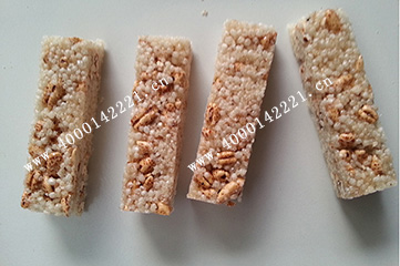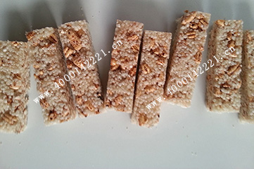 第二天,笔者参观了客户的米花糖生产线,米花糖洁白中渗透着一点微黄,切边整齐,成色效果不错。他们的整条生产线设备也是我公司生产的。